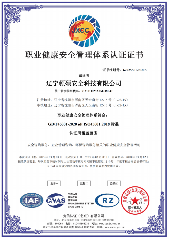 遼寧領碩安全科技有限公司位于遼寧省沈陽市渾南區天壇南街12-15號,注冊資金300萬。主要經營范圍為遼寧省范圍內的安全環保咨詢,生產安全事故應急預案技術服務、企業雙重預防機制建立、履職能力評估、企業科研項目安全部分服務等的技術服務機構?,F有員工12人,其中包括5名遼寧省級安全生產專家。成立于2022年4月18日,在盤錦市成立至今已經為30余家企業提供了安全環保技術咨詢。 業務范圍包括:技術服務、技術開發、技術咨詢、技術交流、技術轉讓、技術推廣,安全咨詢服務,環保咨詢服務,標準化服務,企業管理咨詢,科技中介服務,工程管理服務,特種作業...查看更多